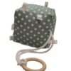 Mintás puha kocka színes szalagokkal, zsinórokkal, fa- műanyag karika rágókával.